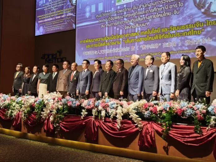 发表时间:2025-08-29 14:00来源:转载 8月28日,泰国一带一路研究院联合中泰丝绸之路经贸投资协会及中泰战略研究中心,在巴吞他尼府泰国科学园会议中心举办研讨会,庆祝中泰建交50周年。会议主题为“中泰文化、科学与技术合作发展暨《泰国数字丝绸之路》研究报告发布”。来自两国的学者、政策制定者及企业界代表齐聚一堂,共同探讨数字经济与创新合作。