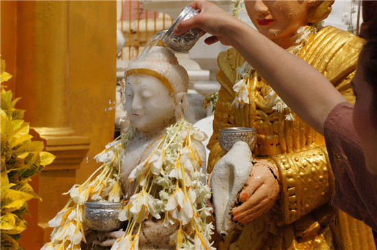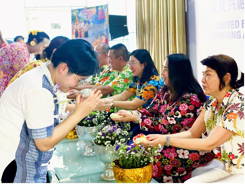 2、长辈感恩礼(รดน้ำดำหัว):晚辈向长辈行洒水礼(轻洒手心或肩膀),献上花束与祝福,长辈回赠祝福语或礼物。